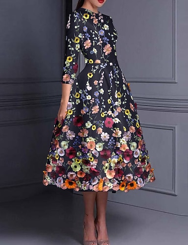 A-Linie K lýtkům Koktejl Šaty Elegantní Vinobraní Třpyt Poloviční rukáv Tričkový Zahradní slavnost Svatební Kapsy Satén Žakár s Květinový potisk Kapsy