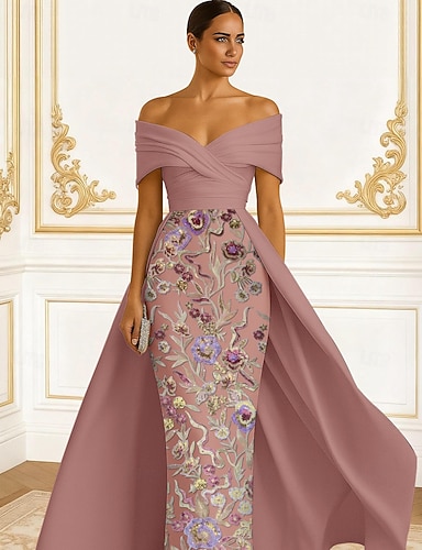 Pouzdrové Na zem Korálkový výšivkový Formální šaty Šaty pro matku nevěsty Večerní šaty Plesové šaty se sukní Formální šaty Elegantní Třpyt Květinový Bez rukávů Do V Svatební Formální Peleríny Satén
