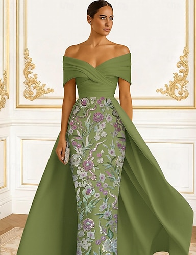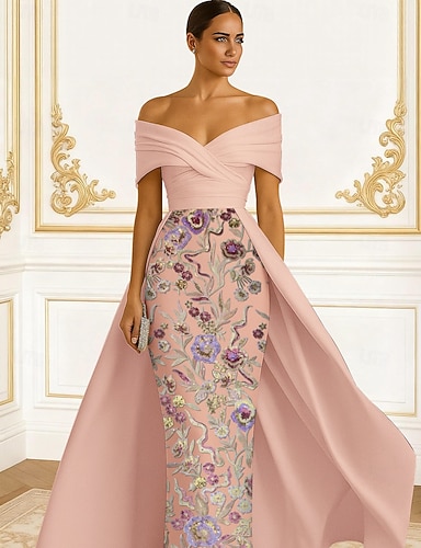 Mořská panna Pouzdrové Na zem Plesové šaty s pláštěnkou Večerní šaty Elegantní Květinový Matka Nevěsty Krátký rukáv Královna Anna Zahradní slavnost Svatební Šifón s Vyšívaná květina Výšivka Aplikace