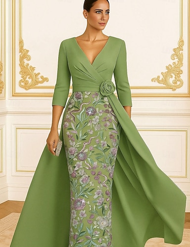 Pouzdrové Na zem Korálkový výšivkový Formální šaty Šaty pro matku nevěsty Večerní šaty Plesové šaty se sukní Formální šaty Elegantní Třpyt Hedvábný povrch 3/4 délka rukávu Klopa Svatební Formální