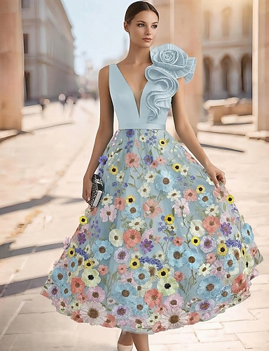 A-Linie Po kotníky K lýtkům Koktejl Šaty Elegantní Vinobraní Květinový Bez rukávů Jedno rameno Zahradní slavnost Svatební Kapsy Satén Žakár s Květinový potisk Vyšívaná květina Mašle