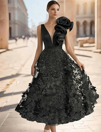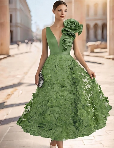 Mořská panna Po kotníky Koktejl Šaty Elegantní Vinobraní Květinový Krátký rukáv Tričkový Svatební Formální Krajka s Vyšívaná květina 3D květiny Aplikace