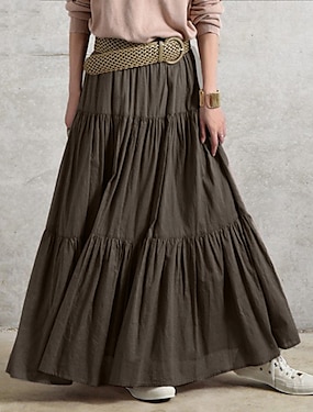 Dámské Houpačka Pracovní sukně Dlouhá sukně Vinobraní léto Maxi Sukně Jednobarevné Plisé Volány Dovolená Ležérní Černá Fialová Fialová Hnědá Podzim Bavlna Bavlna a len