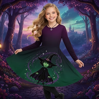 Girls ' 3D Grafika Komiks Šaty Dlouhý rukáv 3D tisk Jaro Podzim Výkon Dovolená Párty Na běžné nošení Princeznovské Krásná Děti 4-12 let Volnočasové šaty Áčkové šaty Délka ke kolenům Běžný