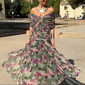 Dámské Midi šaty Šifonové šaty Koktejlky Květinové šaty Šaty s potiskem Módní Moderní Venkovní Dovolená Čajový dýchánek Běžný Květiny Krátký rukáv Do V Vodní modrá Světlá růžová Fialová Trávová zelená