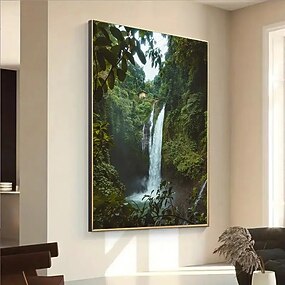 1 bezrámový umělecký tisk na plátně - bujný les, vodopád, středomořský dům - moderní nástěnná dekorace v obývacím pokoji, ložnici, jídelně - plakát s živou přírodní inspirací, velké plátno na zeď