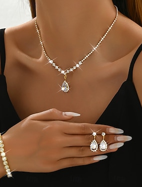 Sady šperků 4ks Štras Slitina Náušnice Náhrdelníky Náramky Dámské Elegantní Vinobraní Módní Geometrické Geometrický Sada šperků Pro Svatební Párty Výročí