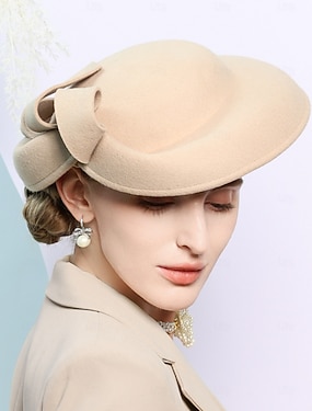 Klobouky 100% vlna Baret 30. léta Svatební koktejl Elegantní Svatba S Mašle Čistá Barva Přílba Pokrývky Hlavy