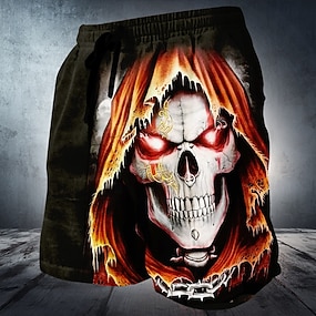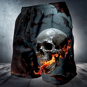 Pánské kostýmy tričko s lebkou a plameny šortky na pláž froté šortky střední pas temný gotický styl dovolená prázdninové 3D tisk s boční kapsou elastické šňůrkové pasové designové oblečení