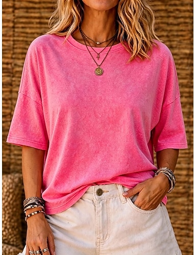 Dámské tričko z 100% bavlny oversized tričko jednofarbné módní klasické každodenní krátký rukáv kulatý výstřih běžné vršky každodenní sporty vycházky černá bílá růžová armádní zelená námořnická modrá