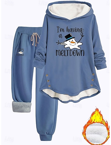 Dámské Teplé Denní Dvoudílné sady Tepláková souprava Sady kalhot Dlouhý rukáv Tričkový Ošklivé Vánoce Šňůrky Tisk Ležérní Denní Černá Tmavě růžová Vodní modrá Podzim Běžný