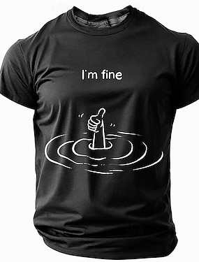 Pánské krátké rukávové grafické tričko | "Jsem v pořádku" - klesající palec nahoru humorné tričko | Relatable design životního stylu