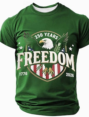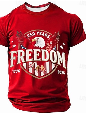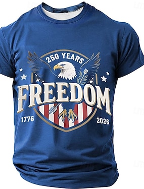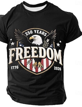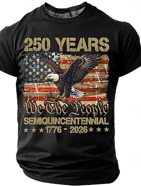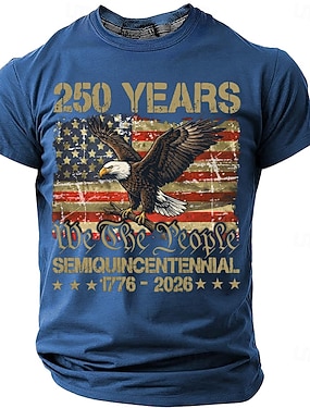 4. července 2026 250. výročí památného dne Pánské 3D tisk tričko s americkou vlajkou crew neck s krátkým rukávem pro denní nošení městská móda
