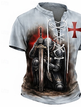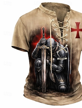 Pánské tričko křižáků grafické tričko rytíř templáře tričko s stojáčkem oblečení 3D potisk casual památeční den tričko s krátkým rukávem šněrovací potisk polyester vintage módní návrhář
