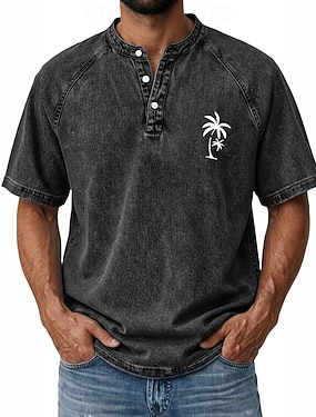 Pánské Kokosový strom Tričko Demin košile Košile ze 100% bavlny Krátký rukáv Vinobraní Šik ven Na běžné nošení Ležérní Domů ulice Podzim zima Léto Jaro Černá Růžová Světle zelená Šedá Světle modrá