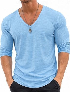 Pánské Tričko Tričko Top Dlouhý rukáv Do V Léto Jaro Bez vzoru Módní Designové Lehký Klasika Měkké Dovolená ulice Jdeme ven Černá Nebeská modř Fialová Top tričko pro muže