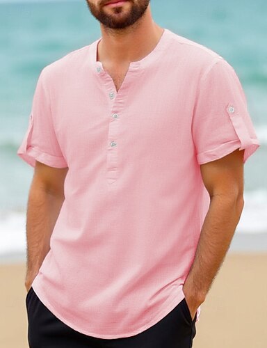 Pánské Košile Lněná košile Letní košile Košile s knoflíkem Košile pro volný čas Plážová košile Bez vzoru Dovolená Ležérní Černá Bílá Světle zelená Světlá růžová Krátký rukáv Límeček Léto Oblečení