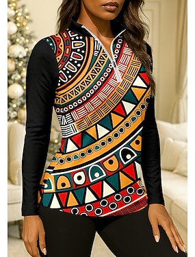 Dámské Geometrický Abstraktní umění Polo mikina Topy Tričko Sportovní košile Dlouhý rukáv Tisk Čtvrtletní zip Pullover UPF50+ Odolná proti UV záření Ochrana proti UV záření Elastický Prodyšné