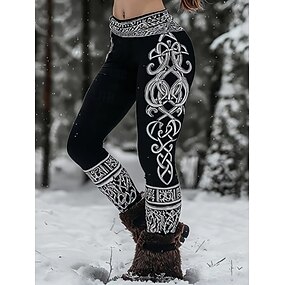 Legíny pro ženy Viking Boho Vintage etnického stylu volné plné délky s vysokým pasem grafický abstrakt 3D tisk rychlé sušení prodyšnost měkké elastické venkovní dovolená ulice černá podzim zima štíhlé