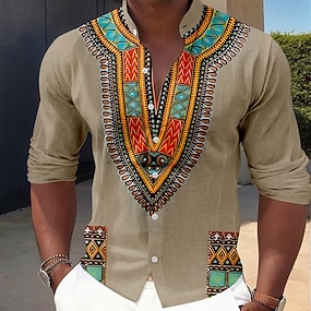 Pánské Geometrický Etický / Afričan Domorodé obyvatelstvo Košile Košile s límečkem Dlouhý rukáv Vintage Retro Ležérní Dovolená Jaro Podzim Stojáčkový límec Kulatý límeček Tlačítko dolů Len jako košile