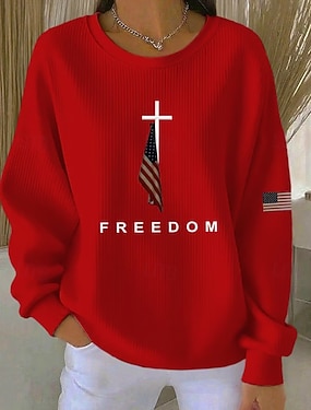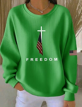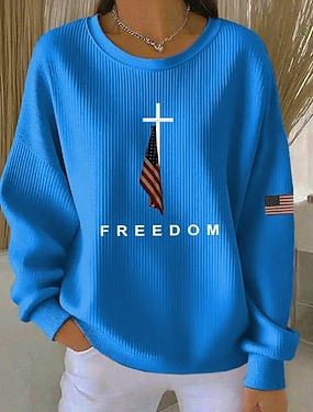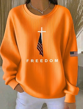 Svetr na zip pro ženy na Den nezávislosti geometrický pruhovaný aktivní módní běžné dlouhý rukáv kulatý výstřih běžné topy každodenní nošení potisk bílá jaro podzim zima