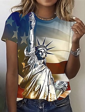 Den nezávislosti vlastenecké dámské tričko grafika vlajka vintage stylový klasický krátký rukáv V krk klasické topy každodenní víkend potisk černá bílá žlutá modrá léto jaro
