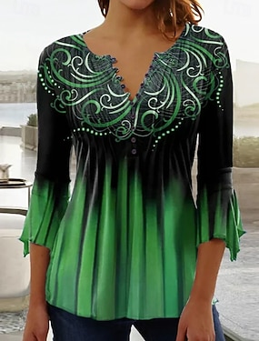 Velikonoční dámské tričko ombre květinová grafika elegantní vintage stylové 3/4 rukáv V-výstřih standardní topy na každodenní nošení knoflíky modrá růžová červená zelená léto jaro