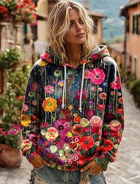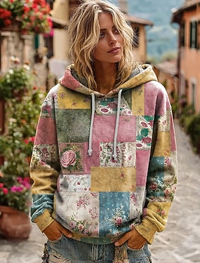 Dámská 3D tisková vintage boho mikina patchwork s květinami zipovatelné s květinovou grafikou punková aktivní vintage dlouhá rukávová mikina s kapucí domácí každodenní móda casual patchwork růžová