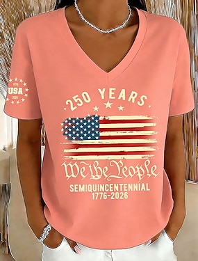 Americký den nezávislosti Dámské Tričko Tisk Grafika Den nezávislosti Vinobraní stylové Klasické Krátký rukáv Tričkový Do V Běžné topy Denní Vodní modrá Černá Bílá Rubínově červená Šedá Léto Jaro