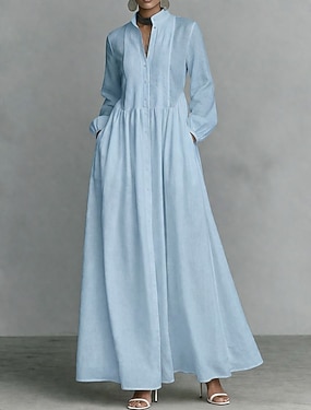 Dámské maxi bavlněné lněné košilové šaty, letní šaty, ležérní denní volný střih, jednobarevné, 3/4 rukávy, klopy, černá, růžová, nebesky modrá, zelená, léto, jaro