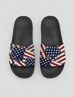 Dámské vlastenecké žabky – lehké plážové sandály s motivem americké vlajky na letní dovolenou, pláž, bazén, sváteční večírky a oslavy nezávislosti