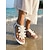 Dámské boho bílé páskové sandály - pohodlné ploché plážové sandály s pletenými detaily &Křížový zavinovač kotníků pro letní dovolenou a pobyty na ostrovech &procházky u moře