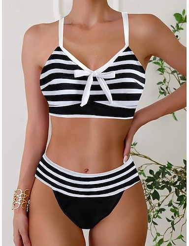 Dámské Plavky Bikiny 2 ks Slipy Plavky Štíhlý Volná záda prázdniny Oblečení na pláž Proužky Do V Bez rukávů Plavky