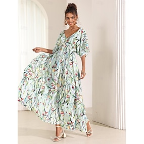 Dámské Midi šaty Swingové šaty Áčkové šaty Letní šaty Elegantní Čechy Tropický vzhled Volné rukávy Dovolená Denní Rande Volný Květinový Krátký rukáv Do V Vodní modrá Trávová zelená Léto