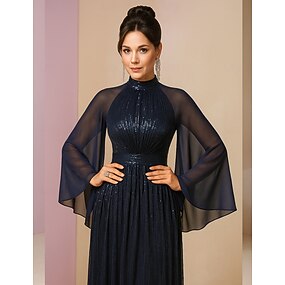 A-Linie Šaty pro matku nevěsty Elegantní Vinobraní Zářivé Stojáček Na zem Spandex Polyester Dlouhý rukáv s Flitry