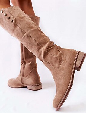 dámské béžové semišové kozačky nad kolena s knoflíkovým detailem - stylová obuv pro běžné vycházky a podzimní módu