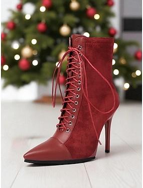 Dámské červené šněrovací jehlové kotníkové boty se špičatou špičkou, šik a elegantní, ideální na vánoční večírky, večerní nošení a formální příležitosti