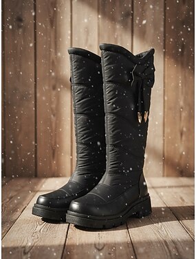 Dámské nepromokavé černé zateplené sněhule – prošívaná umělá kůže s mašlí, teplá podšívka a robustní podrážka, pro zimní, volnočasové a outdoorové aktivity