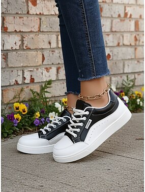 Dámské černé tenisky na platformě – moderní pouliční styl a pohodlné boty se šněrováním na chůzi, cestování, do školy i na každodenní nošení