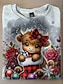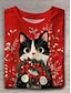 Vánoce Dámské Tričko Grafika Zvíře Vánoční stromek Vinobraní Módní stylové Dlouhý rukáv Tričkový Běžné topy Denní Víkend Tisk Bílá Fialová Rubínově červená Vodní modrá Hnědá Podzim Zima