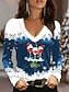 Vánoce Dámské Tričko Grafika Vánoce Sklenice na víno Vinobraní stylové Klasické Dlouhý rukáv Do V Běžné topy Denní Tisk Černá Vodní modrá Trávová zelená Jaro Podzim Zima