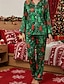Dámské Pyžama Společenské oblečení Sady nočního prádla Módní Na běžné nošení Měkké Stromy Elastický pas Kalhoty Vánoce Dovolená Domů Dlouhý rukáv Košilový límec Trávová zelená Podzim Zima Běžný