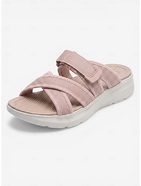 Dámské růžové sportovní nazouvací sandály s nastavitelným páskem – lehké polstrované pohodlné nazouvací sandály, prodyšná obuv s otevřenou špičkou na cestování, dovolenou, pláž &denní nošení