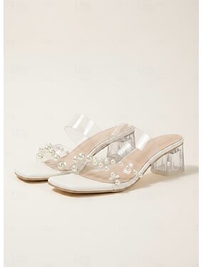 dámské čiré pvc podpatky s perleťovými akcenty a blokovým podpatkem, ideální pro svatby a formální události