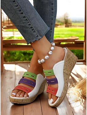vícebarevné sandály na klínku pro ženy – stylové sandály s otevřenou špičkou s pohodlnou platformou pro ležérní letní outfity