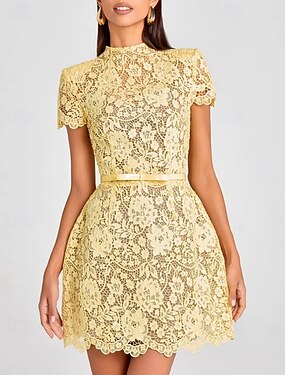 Dámské Mini šaty Krajkové šaty Plášťové šaty Elegantní Módní Moderní Denní Dovolená Jdeme ven Běžný Květinový Bez vzoru Krátký rukáv Tričkový Žlutá Léto Jaro