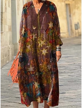 Dámské Maxi Šaty Boho Korzetové Šaty Party Casual Denní Rande Vycházení Pravidelný Fit Grafika Geometrie Paisley Dlouhý Rukáv V Výstřih Tmavě Hnědá Jaro Podzim Zima