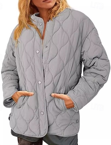 Dámské Puffer bunda Prošívaná bunda Neformální bunda Pohodlné Prodyšné Kapsy Knoflíky Na běžné nošení Bez vzoru Dovolená ulice Ležérní Denní nošení Jednořadé Krátké Přehnutý Běžný Dlouhý rukáv