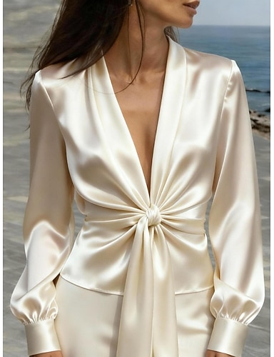 Dámské Košile Saténová košile Halenka Pevná barva stylové Klasické Moderní Dlouhý rukáv Do V Běžné topy Denní Dovolená Jdeme ven Vodní modrá Černá Bílá Šampaňská Světlá růžová Léto Jaro