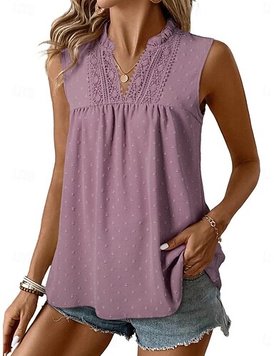 Dámské Tričko Tričko Top Krajka Slátanina Bez vzoru Módní stylové Klasické Bez rukávů Tričkový Běžné topy Denní Jdeme ven Víkend Vodní modrá Černá Bílá Fialová Meruňková Léto Jaro